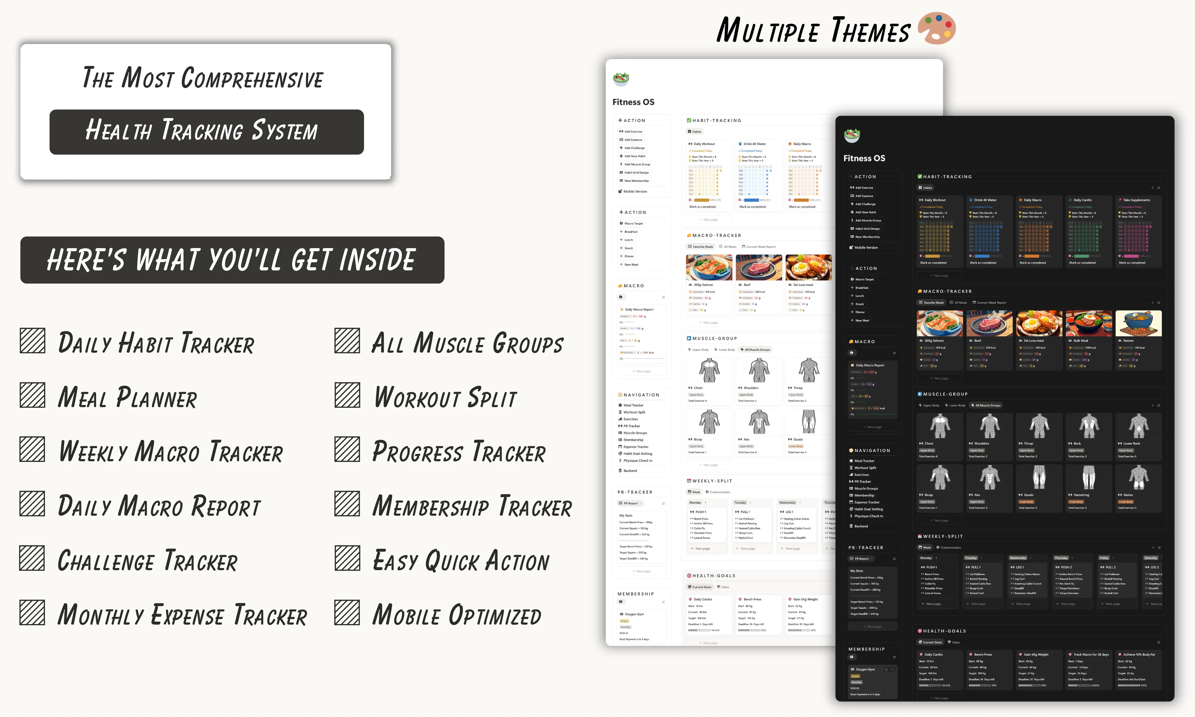 Fitness OS puts your entire health life into one Notion system - workouts, nutrition, habits, progress tracking, and goals - so you finally have one place that shows you the full picture.