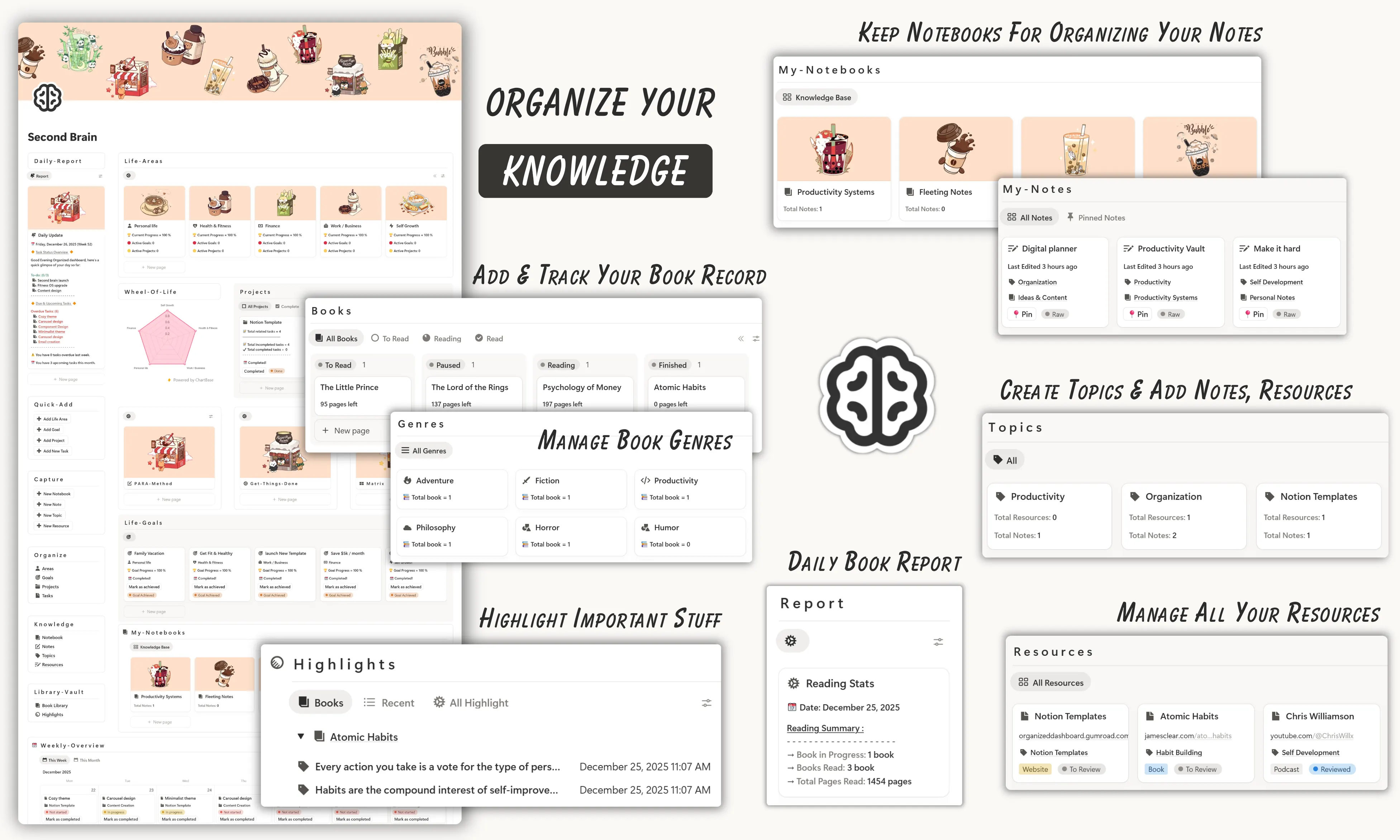 -> Book tracker, notebooks, highlights, and resources all connected.