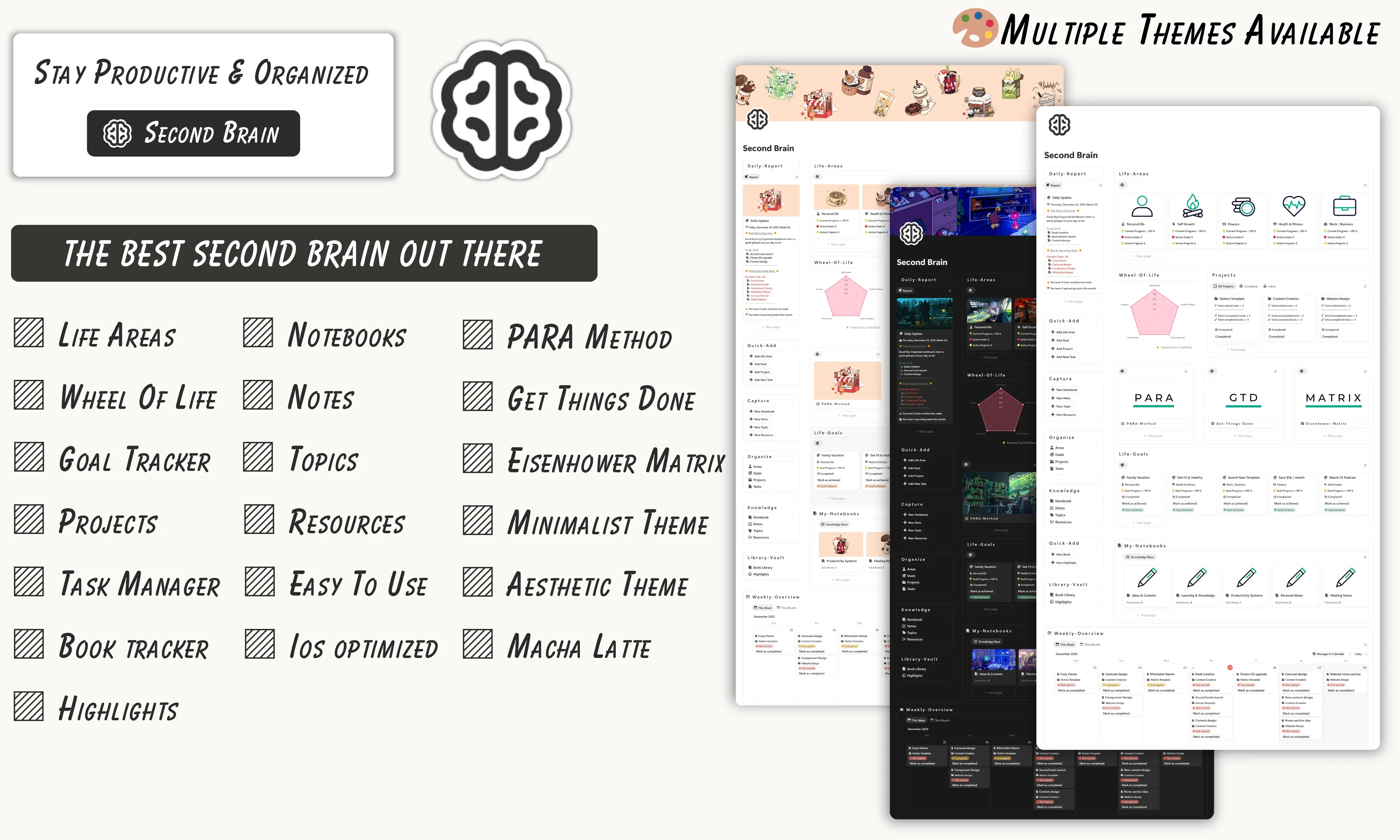 -> PARA, GTD, and Eisenhower Matrix fully built, ready to use from day one.